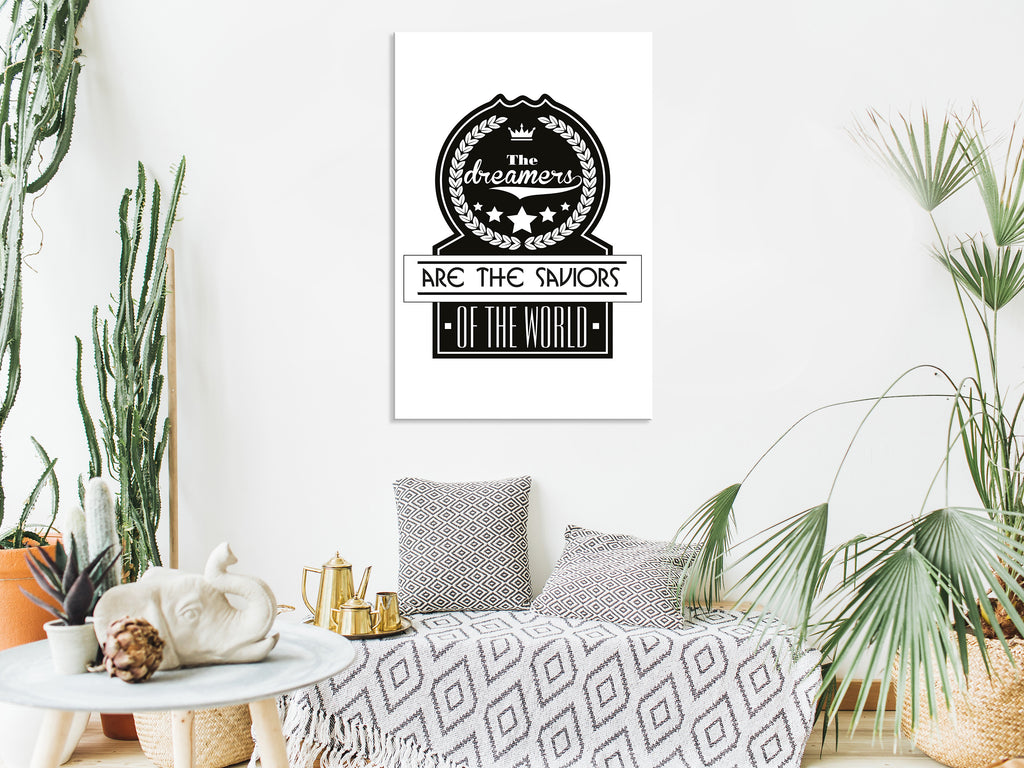 Laat de canvas print "Schilderij - The Dreamers Are the Saviors of the World (1 Part) Vertical" uw woning en de woningen van uw dierbaren veranderen!