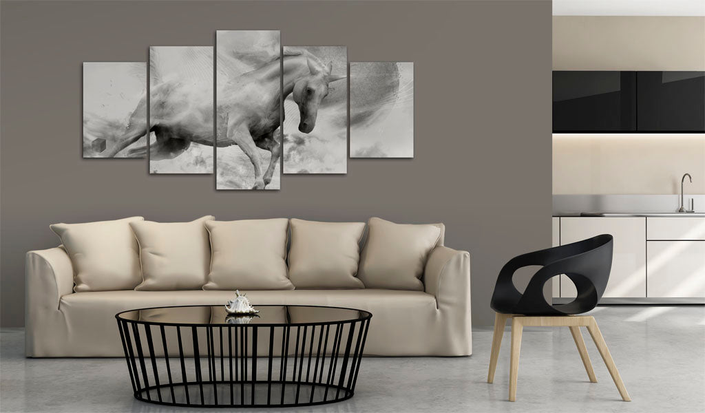 Hoogwaardige materialen Canvas print "Schilderij - The last unicorn" wordt geprint op een speciaal vlies-canvas dat kleuren perfect weergeeft. Het canvas wordt gespannen op een licht maar stabiel frame, gemaakt van milieuvriendelijke materialen. Decoratie van topkwaliteit wordt verstrekt door hoogwaardig printen, waardoor de kleuren levendig zijn en de details perfect gereproduceerd worden, ongeacht het formaat van de canvas print.