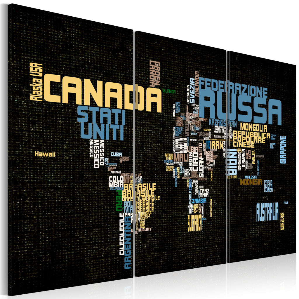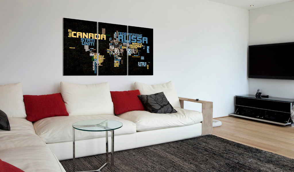 Laat de canvas print "Schilderij - The World is not enough - Triptych" uw woning en de woningen van uw dierbaren veranderen!