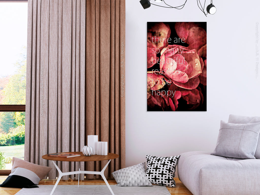 Laat de canvas print "Schilderij - There Are so Many Beautiful Reasons to Be Happy (1 Part) Vertical" uw woning en de woningen van uw dierbaren veranderen!