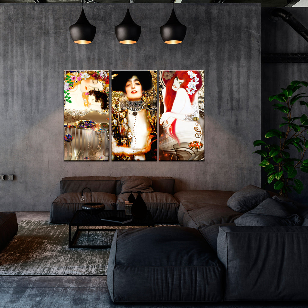 Laat de canvas print "Schilderij - Three Women (3 Parts)" uw woning en de woningen van uw dierbaren veranderen!