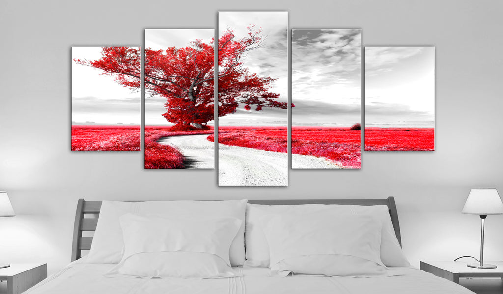 Laat de canvas print "Schilderij - Tree near the Road (5 Parts) Red" uw woning en de woningen van uw dierbaren veranderen!