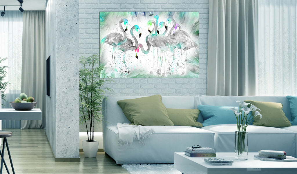 Laat de canvas print "Schilderij - Turquoise Flamingoes" uw woning en de woningen van uw dierbaren veranderen!