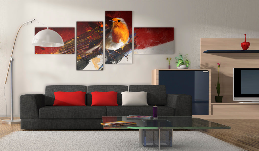 Laat de canvas print "Schilderij - Vogeltje op vier delen" uw woning en de woningen van uw dierbaren veranderen!