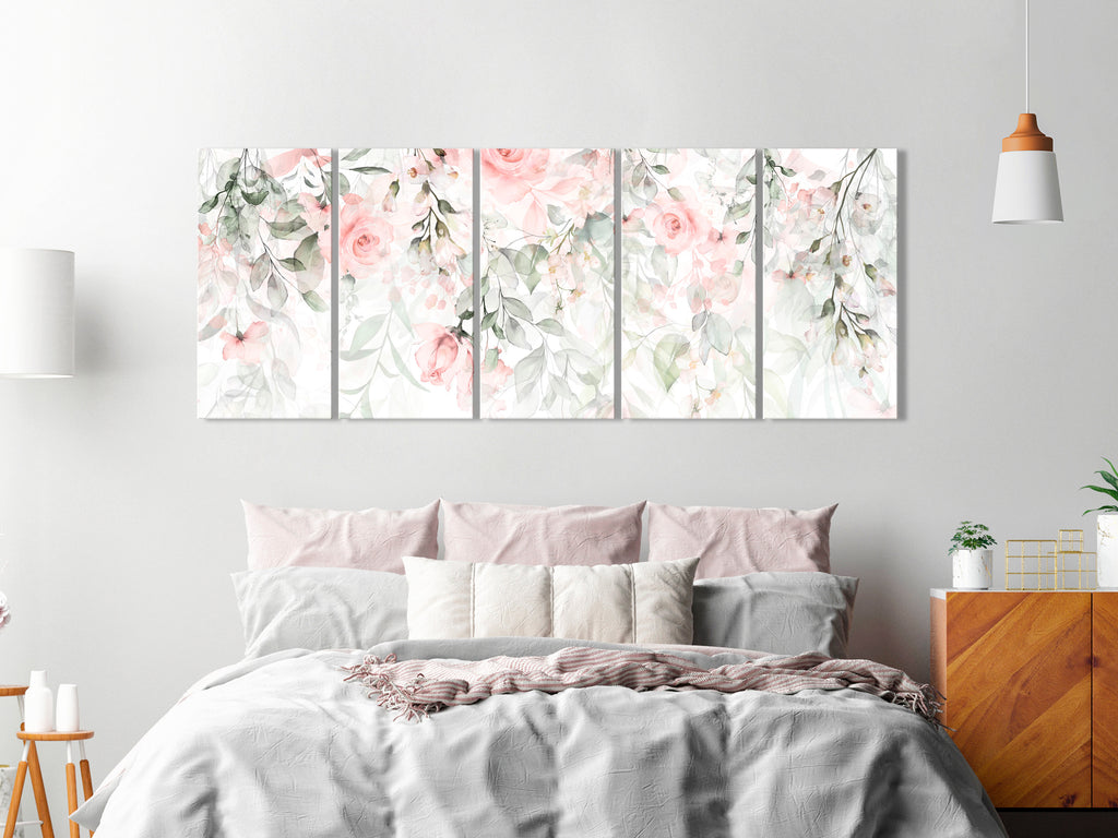 Laat de canvas print "Schilderij - Waterfall of Roses (5 Parts) Narrow - First Variant" uw woning en de woningen van uw dierbaren veranderen!