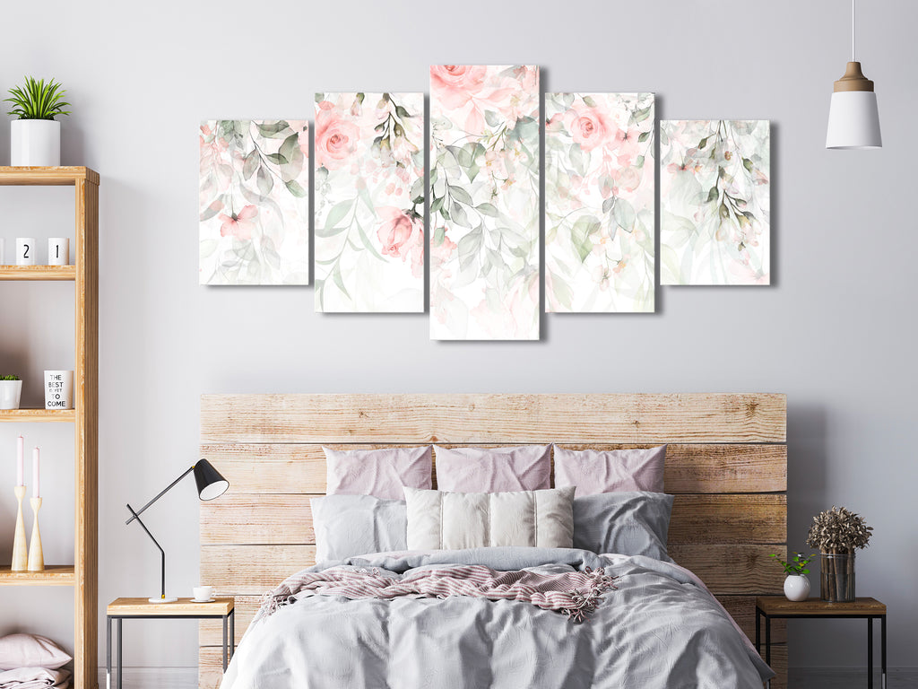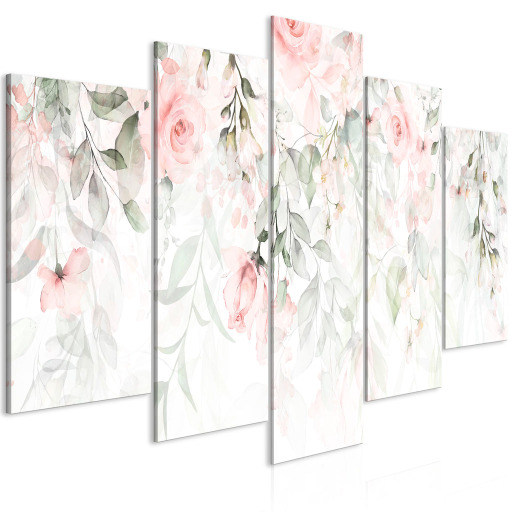 Laat de canvas print "Schilderij - Waterfall of Roses (5 Parts) Wide - First Variant" uw woning en de woningen van uw dierbaren veranderen!