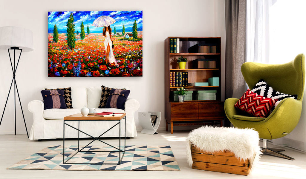 Laat de canvas print "Schilderij - Woman with Umbrella" uw woning en de woningen van uw dierbaren veranderen!