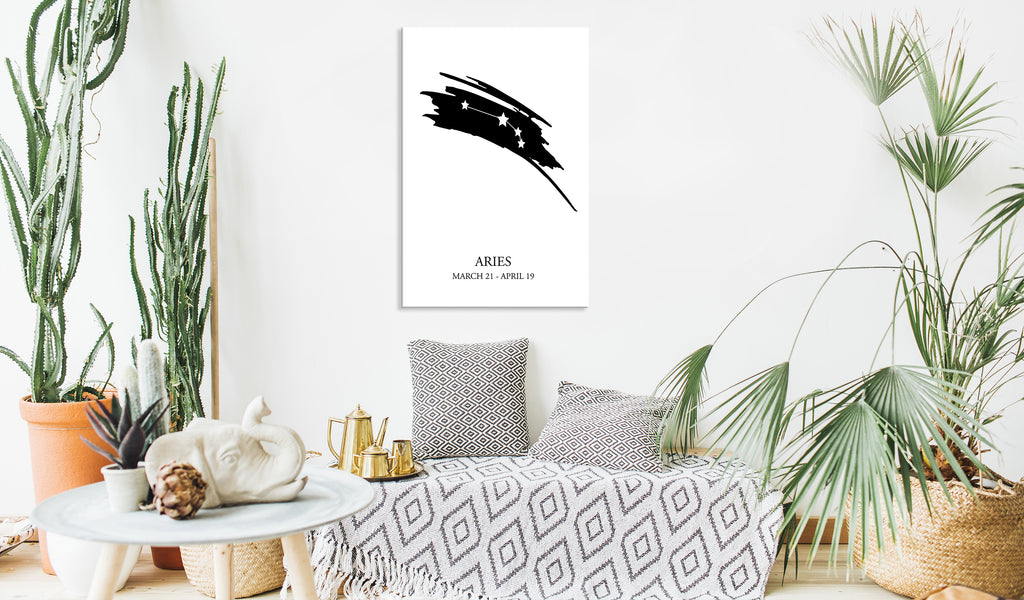 Laat de canvas print "Schilderij - Zodiac Signs: Aries (1 Part) Vertical" uw woning en de woningen van uw dierbaren veranderen!