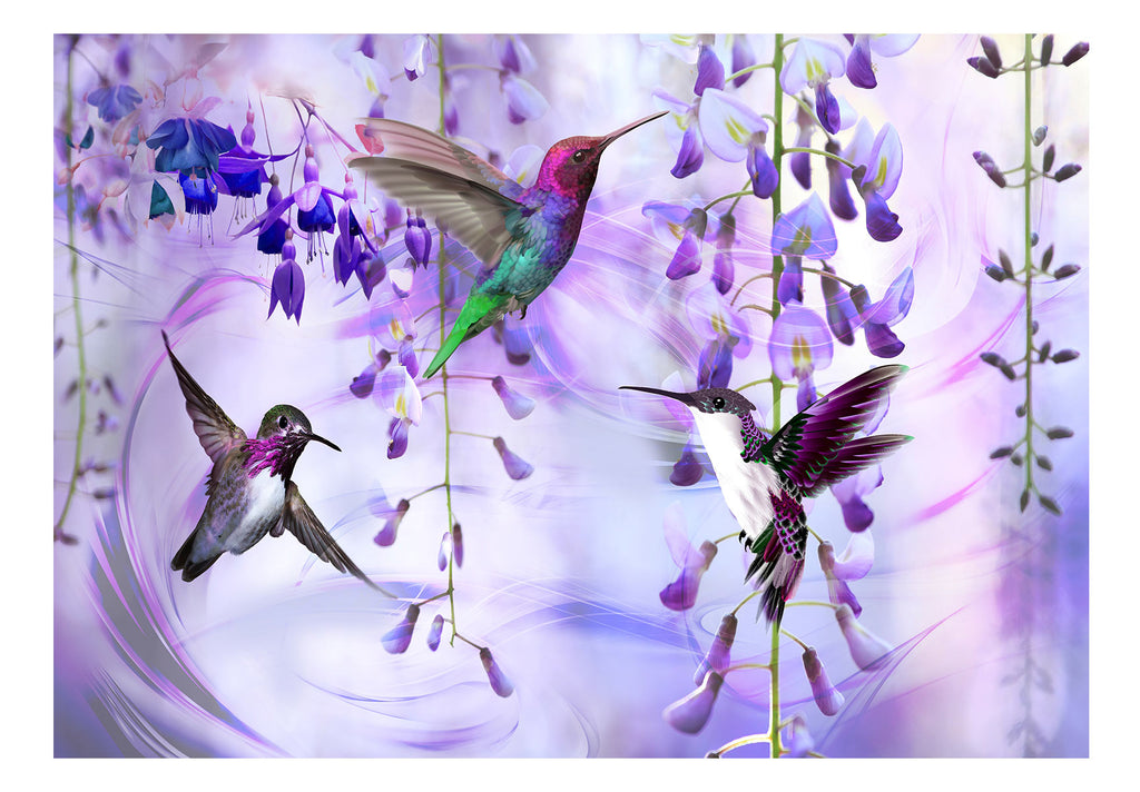 Printen van de hoogste kwaliteit! Zelfklevend fotobehang "Zelfklevend fotobehang - Flying Hummingbirds (Violet)" is gedrukt in HD-technologie, in resoluties tot 600 dpi. Hierdoor zijn de kleuren levendig en zijn de details perfect weergegeven, onafhankelijk van het formaat van het fotobehang. De print wordt aangebracht op zelfklevende folie met een matte afwerking en een gewicht van 50 g/m². Zowel het materiaal zelf als de gebruikte print zijn water- en uv-bestendig, zodat de kleuren niet vervagen, zelfs niet bij langdurige blootstelling aan zonlicht.