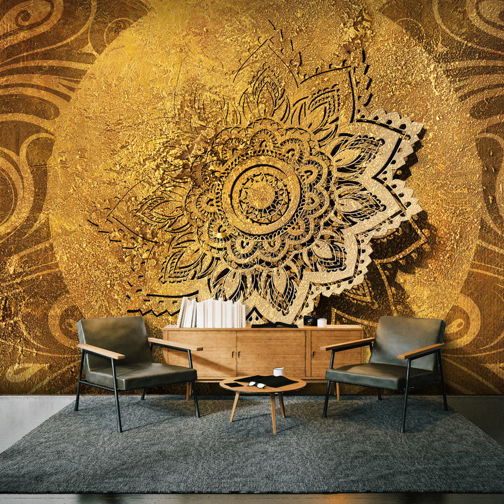 Printen van de hoogste kwaliteit! Zelfklevend fotobehang "Zelfklevend fotobehang - Golden Illumination II" is gedrukt in HD-technologie, in resoluties tot 600 dpi. Hierdoor zijn de kleuren levendig en zijn de details perfect weergegeven, onafhankelijk van het formaat van het fotobehang. De print wordt aangebracht op zelfklevende folie met een matte afwerking en een gewicht van 50 g/m². Zowel het materiaal zelf als de gebruikte print zijn water- en uv-bestendig, zodat de kleuren niet vervagen, zelfs niet bij langdurige blootstelling aan zonlicht.