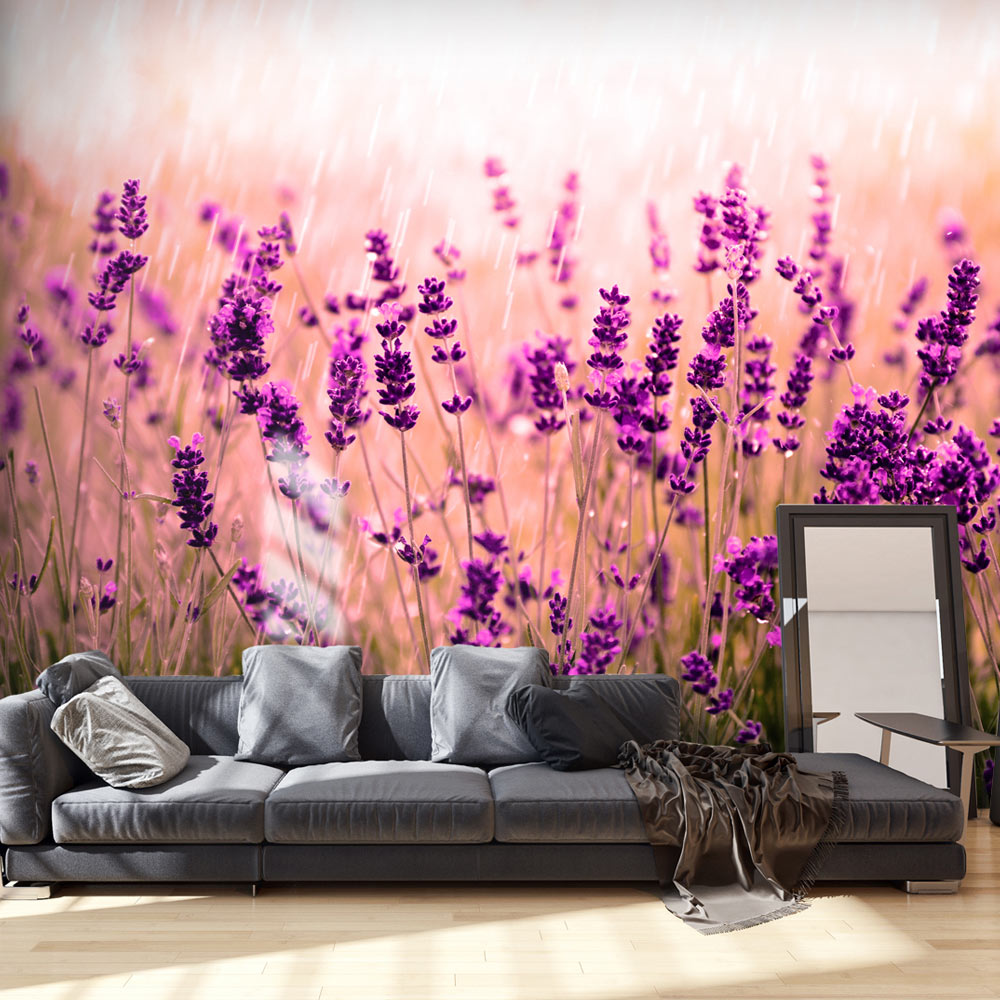 Printen van de hoogste kwaliteit! Zelfklevend fotobehang "Zelfklevend fotobehang - Lavender in the Rain" is gedrukt in HD-technologie, in resoluties tot 600 dpi. Hierdoor zijn de kleuren levendig en zijn de details perfect weergegeven, onafhankelijk van het formaat van het fotobehang. De print wordt aangebracht op zelfklevende folie met een matte afwerking en een gewicht van 50 g/m². Zowel het materiaal zelf als de gebruikte print zijn water- en uv-bestendig, zodat de kleuren niet vervagen, zelfs niet bij langdurige blootstelling aan zonlicht.