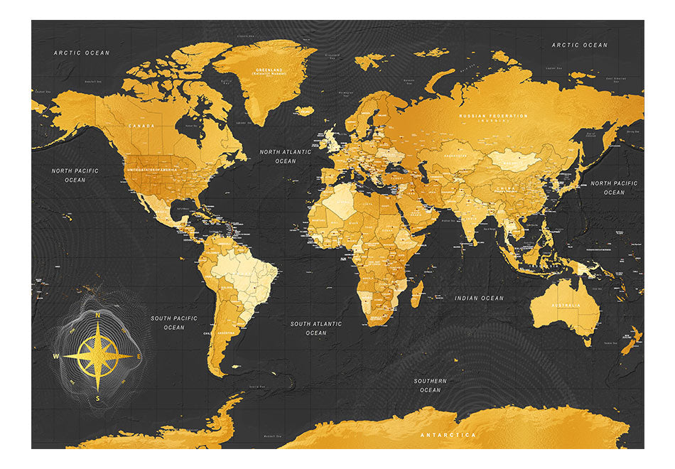 Printen van de hoogste kwaliteit! Zelfklevend fotobehang "Zelfklevend fotobehang - Map: Golden World" is gedrukt in HD-technologie, in resoluties tot 600 dpi. Hierdoor zijn de kleuren levendig en zijn de details perfect weergegeven, onafhankelijk van het formaat van het fotobehang. De print wordt aangebracht op zelfklevende folie met een matte afwerking en een gewicht van 50 g/m². Zowel het materiaal zelf als de gebruikte print zijn water- en uv-bestendig, zodat de kleuren niet vervagen, zelfs niet bij langdurige blootstelling aan zonlicht.